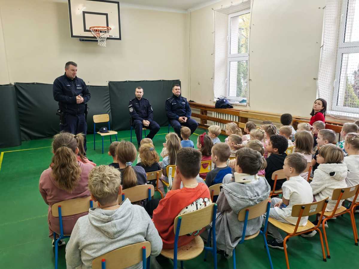 Zajęcia cieszyły się dużym zainteresowaniem uczniów, którzy aktywnie uczestniczyli w rozmowie i chętnie zadawali pytania. Tego typu inicjatywy pozwalają najmłodszym lepiej zrozumieć, jak dbać o swoje bezpieczeństwo w szkole, w domu i na drodze.