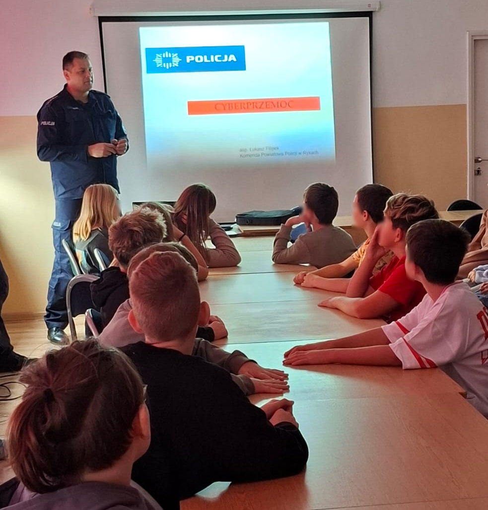 Podczas spotkania funkcjonariusze rozmawiali o bezpieczeństwie dzieci i młodzieży, zwracając szczególną uwagę na problem przemocy rówieśniczej, a także cyberprzemocy i zagrożeń w sieci. Policjanci tłumaczyli, jak rozpoznawać niebezpieczne sytuacje w Internecie, jak reagować na przemoc oraz gdzie szukać pomocy.