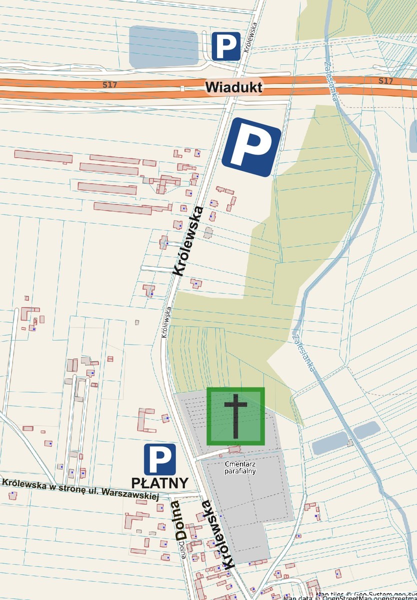 Od godzin porannych do około 15:00 kierowcy jadący ulicą Królewską od strony Kłoczewa dojadą jedynie do wyznaczonych parkingów przy wiadukcie. Osoby, które nie udają się na cmentarz, będą kierowane przez służby na objazdy, ponieważ w tym czasie nie będzie możliwości dojazdu ulicą Królewską do centrum Ryk.