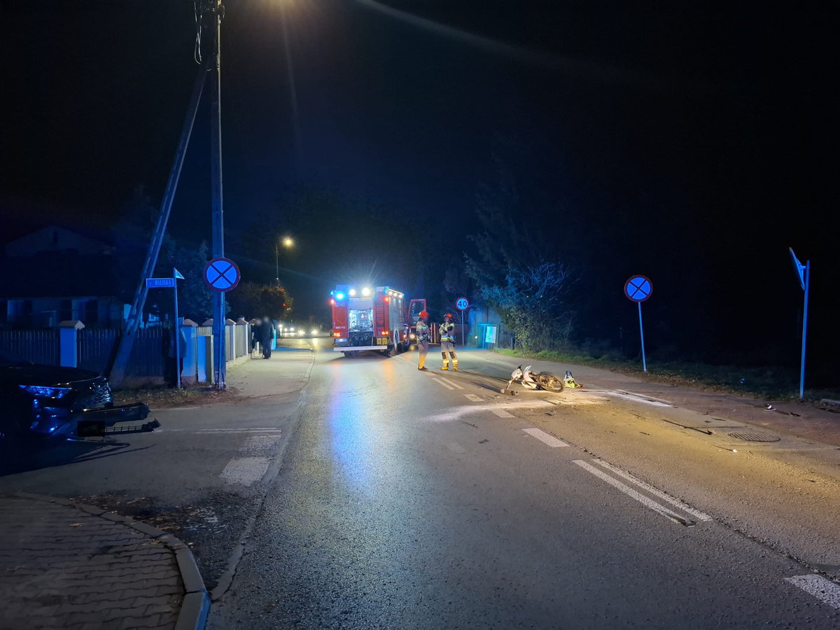 Zderzenie samochodu z motorowerem w Rykach – 14-latek trafił do szpitala