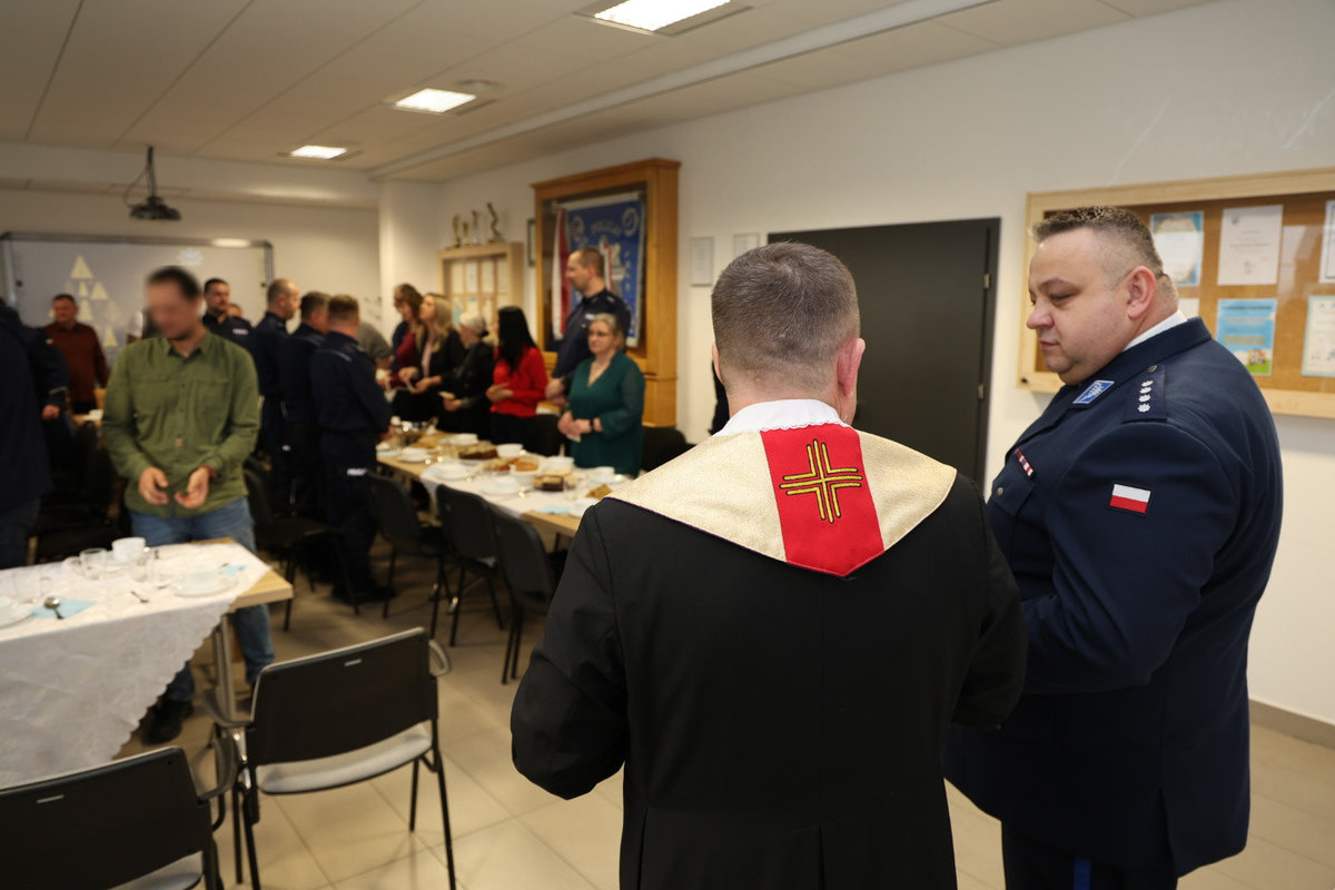 W sali konferencyjnej Komendy Powiatowej Policji w Rykach dziś panowała wyjątkowa, świąteczna atmosfera. Funkcjonariusze oraz pracownicy cywilni ryckiej komendy spotkali się na tradycyjnym spotkaniu opłatkowym, zorganizowanym w związku ze zbliżającymi się Świętami Bożego Narodzenia.