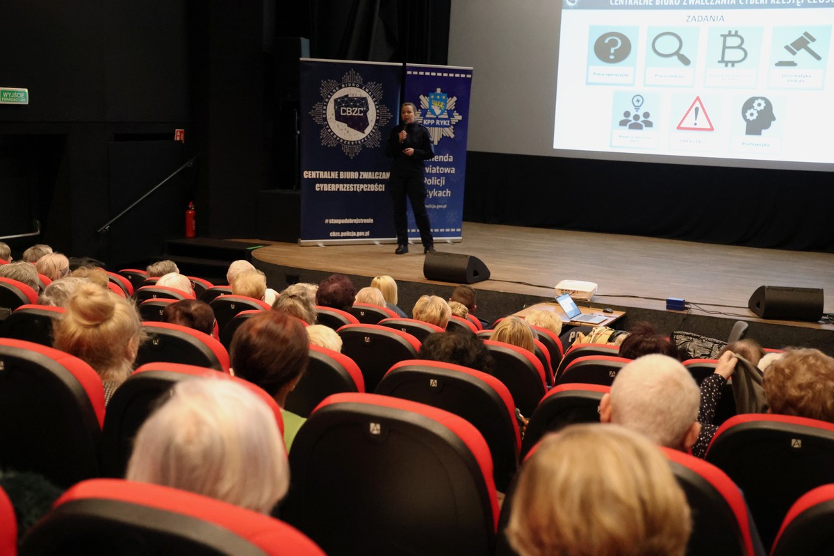 W sali kina w Rykach odbyło się spotkanie profilaktyczne pod nazwą „Bezpieczny Senior”, skierowane do osób starszych. Głównym celem wydarzenia było podniesienie poziomu wiedzy seniorów na temat bezpieczeństwa oraz przeciwdziałania przestępstwom, zwłaszcza tym popełnianym przy wykorzystaniu nowoczesnych technologii i narzędzi komunikacji.