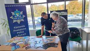 Funkcjonariusz z Komendy Powiatowej Policji w Rykach wziął udział w akcji „Dzień Seniora”, zorganizowanej w siedzibie Zakładu Ubezpieczeń Społecznych w Rykach. Celem przedsięwzięcia było zwiększenie świadomości osób starszych w zakresie bezpieczeństwa oraz przeciwdziałanie przestępstwom, których ofiarami często padają seniorzy.